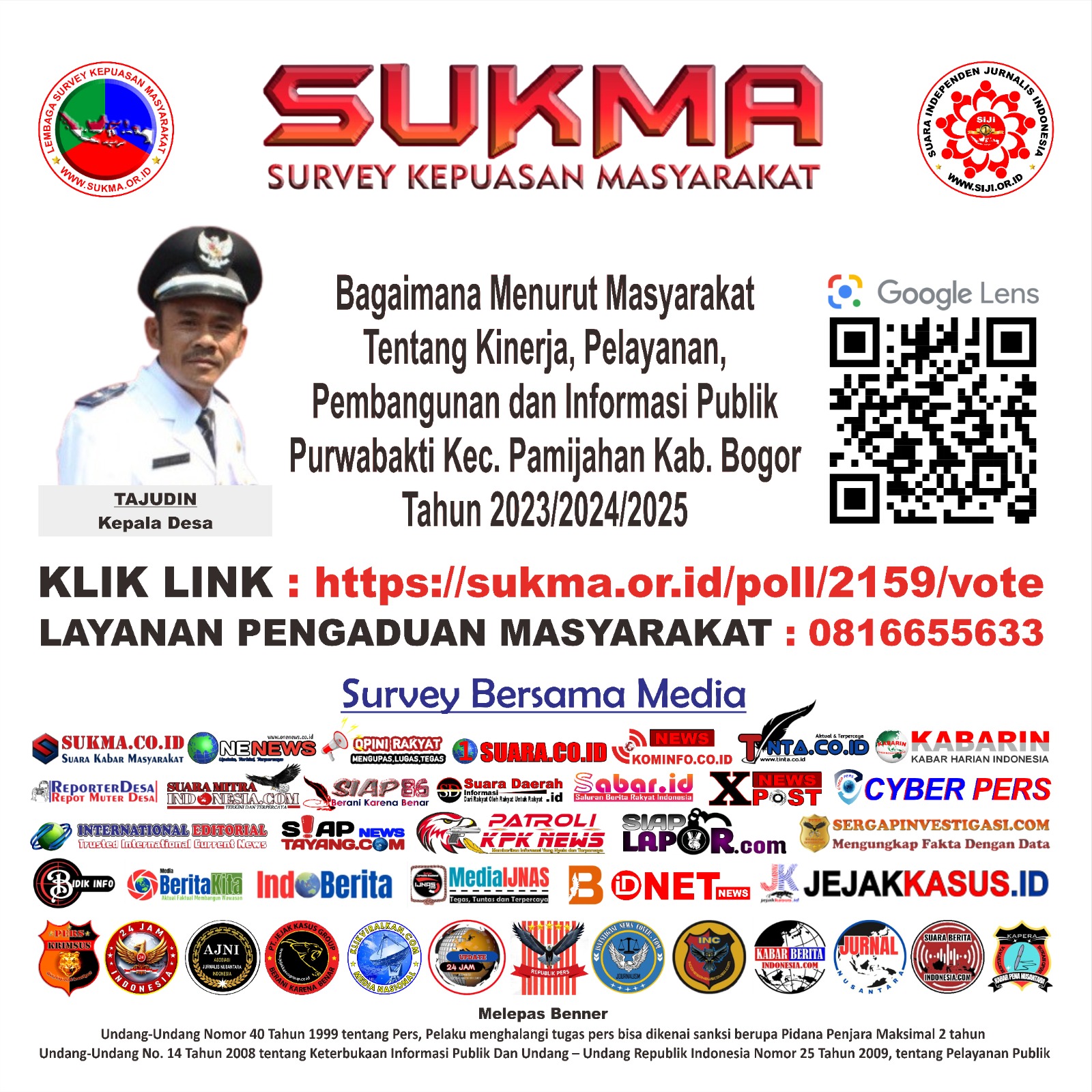 “Tujuan kami bukan hanya mengukur kepuasan publik, tapi juga membiasakan masyarakat melek digital. Semua pengaduan bisa disampaikan lewat website sukma.or.id, dan kami pastikan identitas pelapor dijaga,” ujarnya.